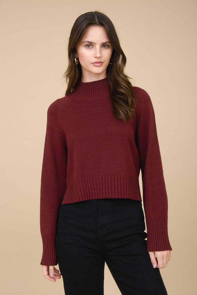 Malia Mock Neck Cropped Sweater Red Wood