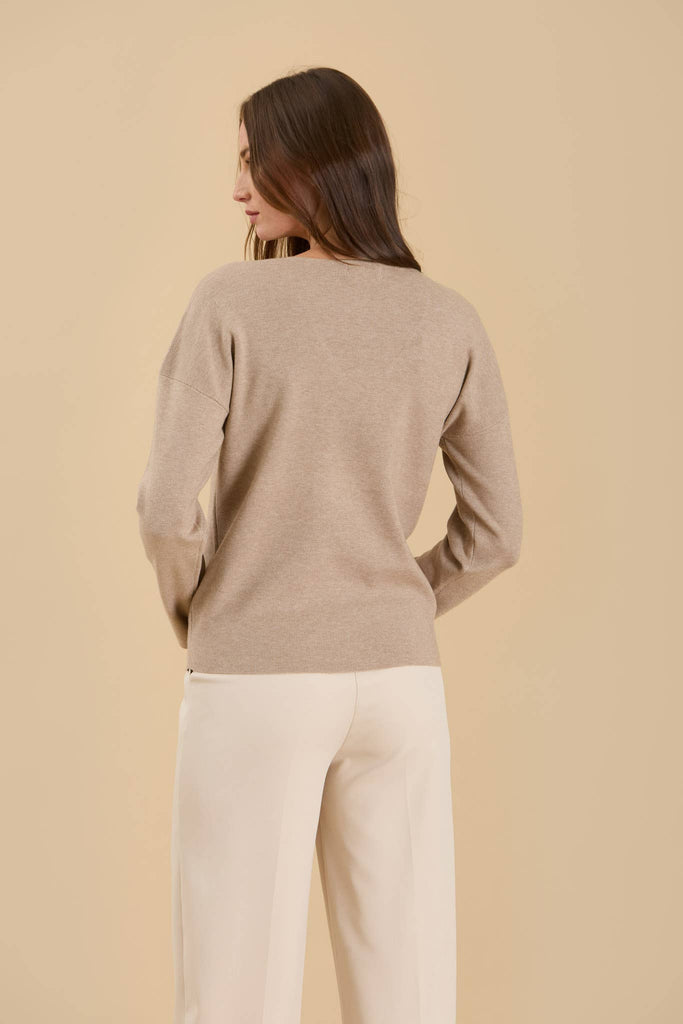 Stay effortlessly stylish and cozy all season long with this solid knit V-neck sweater in mocha—your new go-to for fall, winter, and beyond.