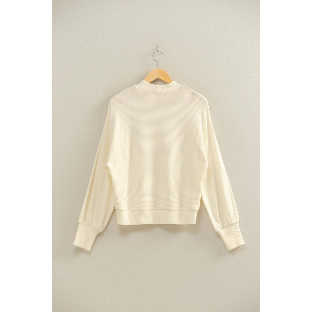 Meet your new go-to: the Ribbed Balloon Sleeve Top—a perfect blend of comfort, style, and versatility. Designed with a high neckline, drop shoulders, and gorgeous balloon sleeves, this cute long sleeve top gives you a casually-chic look you can wear anywhere.