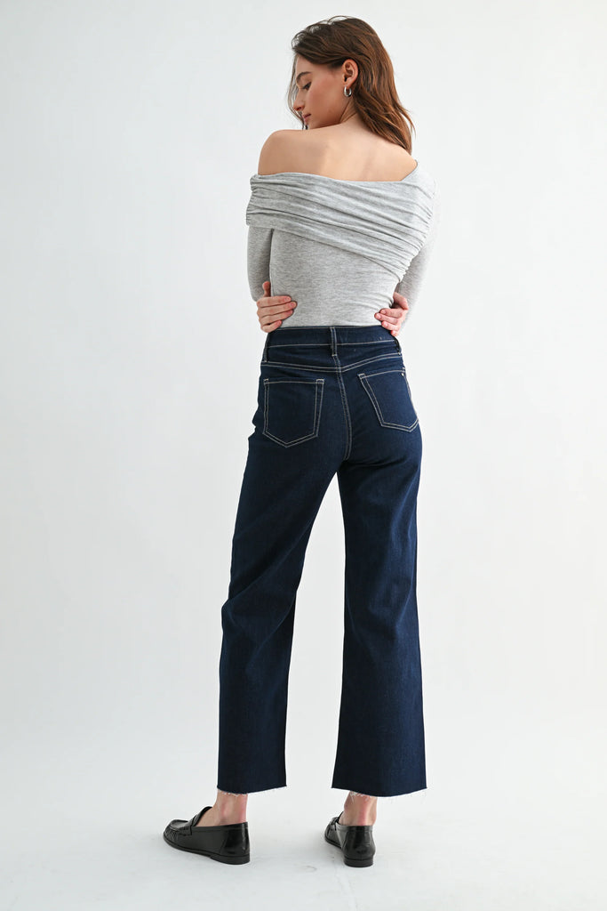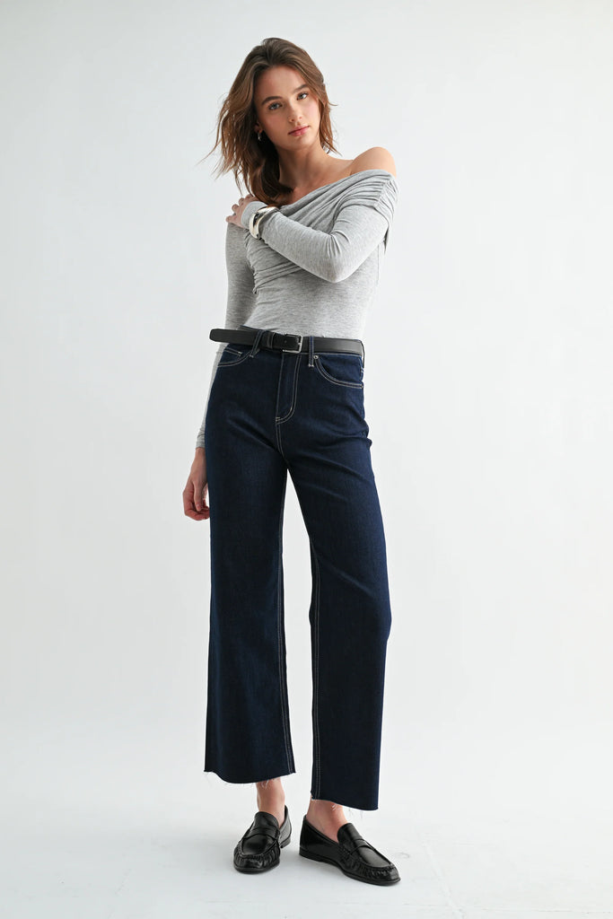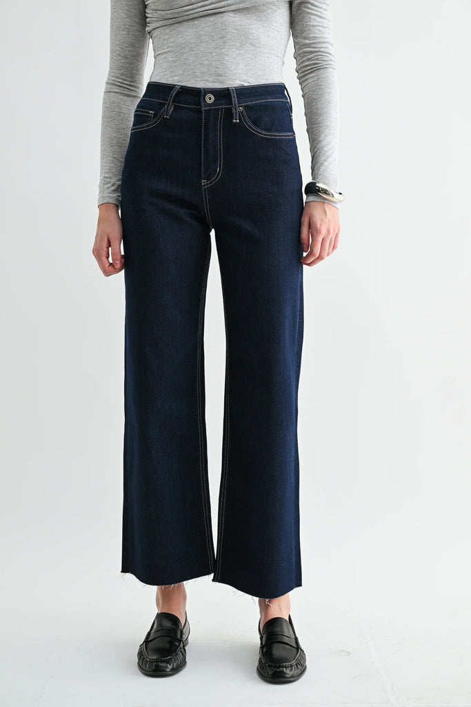 Mica High Rise Wide Leg Ankle Jeans with Subtle Glitter Fabric