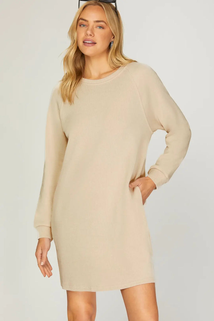 Cozy Ecru Sweatshirt Mini Dress