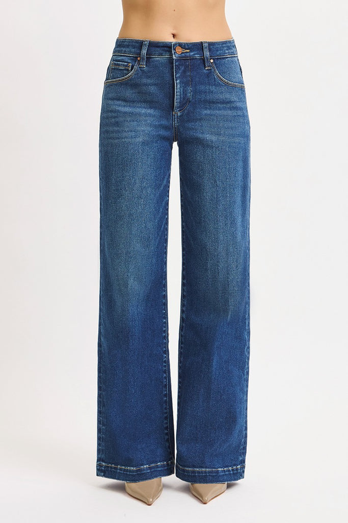 Risen Jeans Tummy Control Mid Rise Wide Leg w/ Iron Press Detail